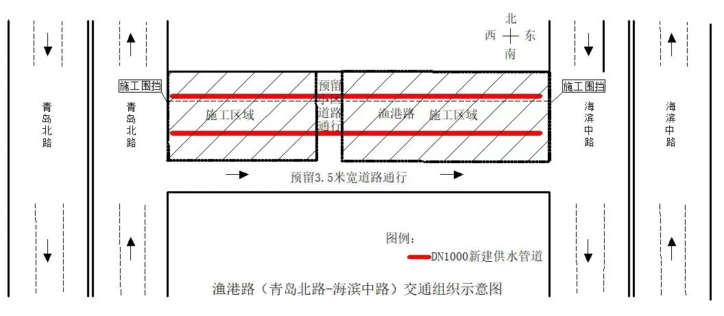 二、占用道路:占用漁港路(青島北路至海濱中路路段)北幅8.5米道路,圍擋封閉施工(詳見示意圖)。