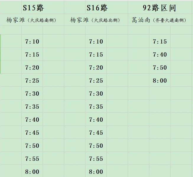 為滿足經(jīng)區(qū)周邊市民上班、學(xué)生上學(xué)出行需要,自9月9日起,威海公交集團試運行S15路楊家灘(大慶路南側(cè))環(huán)行、S16楊家灘(大慶路北側(cè))環(huán)行,92路區(qū)間加班(蒿泊南—五洲中學(xué))。