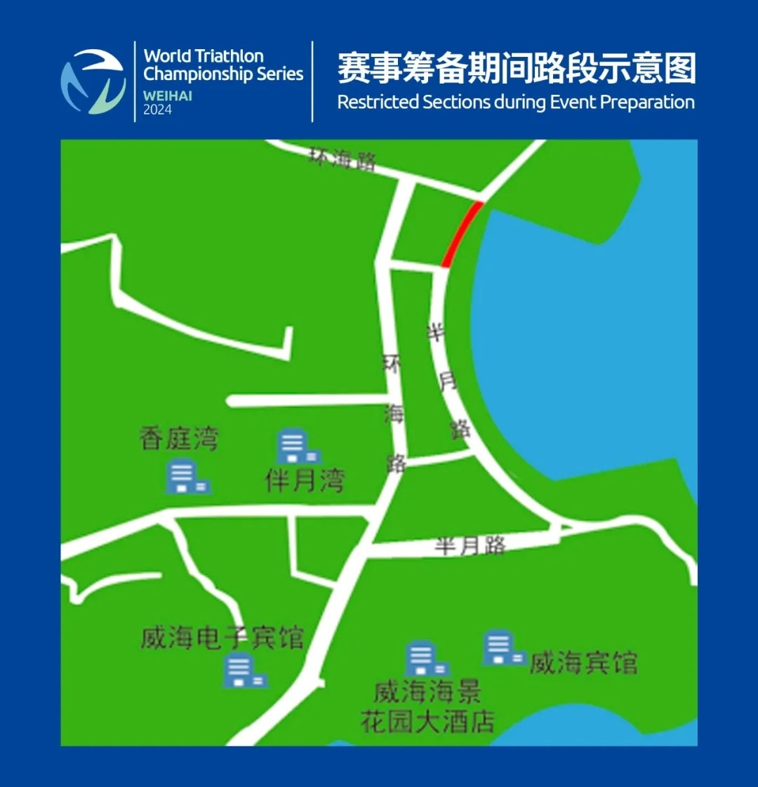 (一)賽事籌備期間:1.管制時間:9月23日7:00至9月26日全天。2.管制路段:環(huán)翠區(qū)半月灣半月路部分路段。具體路線示意圖: