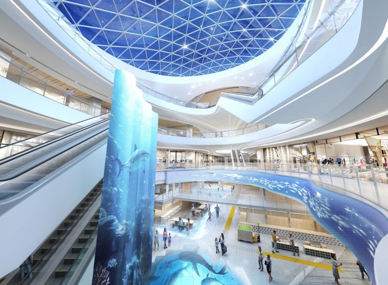 鯤鵬水擊,浩浩湯湯。威海灣城市綜合體以“鯨魚(yú)出?!睘殪`感,其中“鯨脊”部分為大跨度拱結(jié)構(gòu)配合預(yù)應(yīng)力空心樓板構(gòu)成,為全國(guó)首創(chuàng),其背后蘊(yùn)含的包容、博愛(ài)、拼搏等海洋文化,也為該項(xiàng)目增添了學(xué)養(yǎng)深厚的極致韻味。定位城市功能新提升、城市形象重塑造的威海灣城市綜合體,致力于創(chuàng)造一個(gè)多元化的現(xiàn)代城市商業(yè)空間。