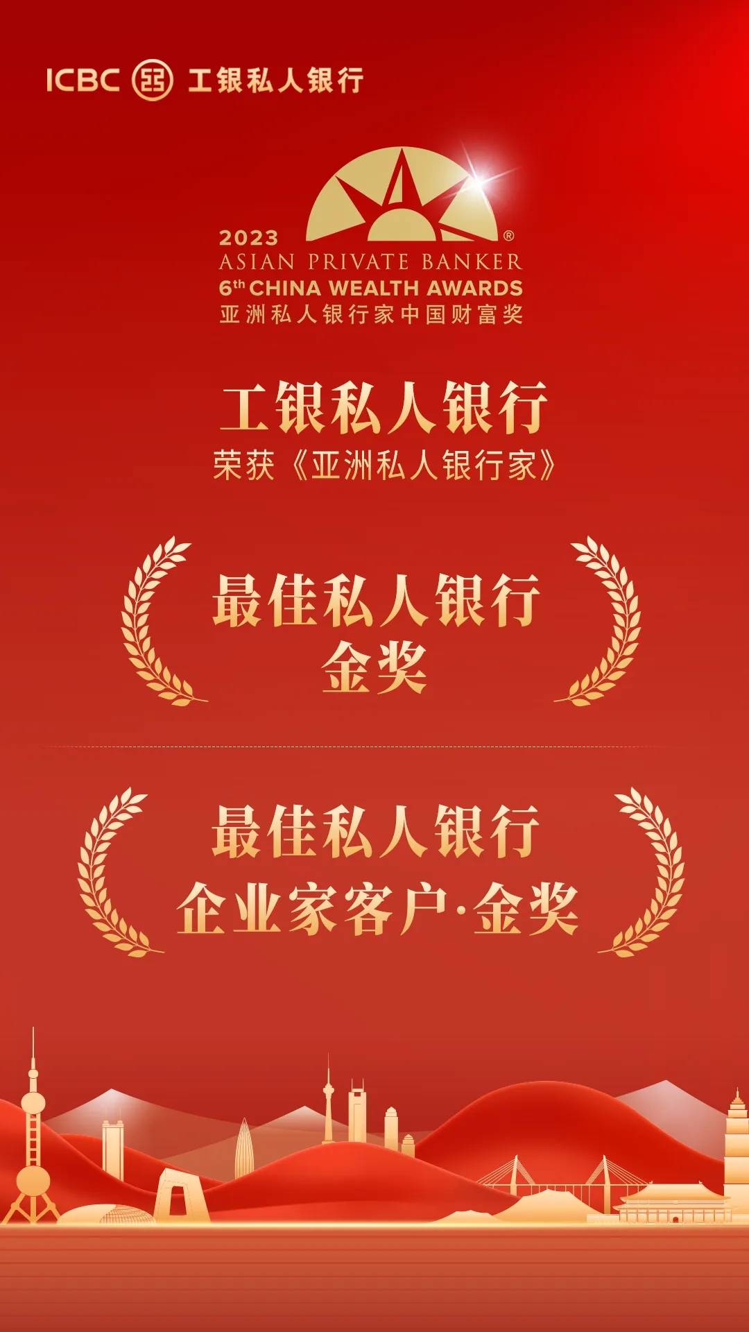 近日,香港《亞洲私人銀行家》雜志公布“2023年中國財(cái)富獎(jiǎng)”評選結(jié)果,工銀私人銀行從眾多同業(yè)競爭者中脫穎而出,榮膺“最佳私人銀行——國有銀行組·金獎(jiǎng)”及“最佳私人銀行——企業(yè)家客戶·金獎(jiǎng)”殊榮?!秮喼匏饺算y行家》雜志作為全亞洲最有影響力的私人銀行媒體機(jī)構(gòu)之一, 以其專業(yè)的報(bào)道和深度的數(shù)據(jù)分析深受私人銀行與財(cái)富管理界信賴,此次榮獲《亞洲私人銀行家》雜志兩項(xiàng)大獎(jiǎng),這標(biāo)志著工銀私人銀行在綜合化服務(wù)能力和企業(yè)家客群服務(wù)能力表現(xiàn)得到權(quán)威媒體的充分肯定。